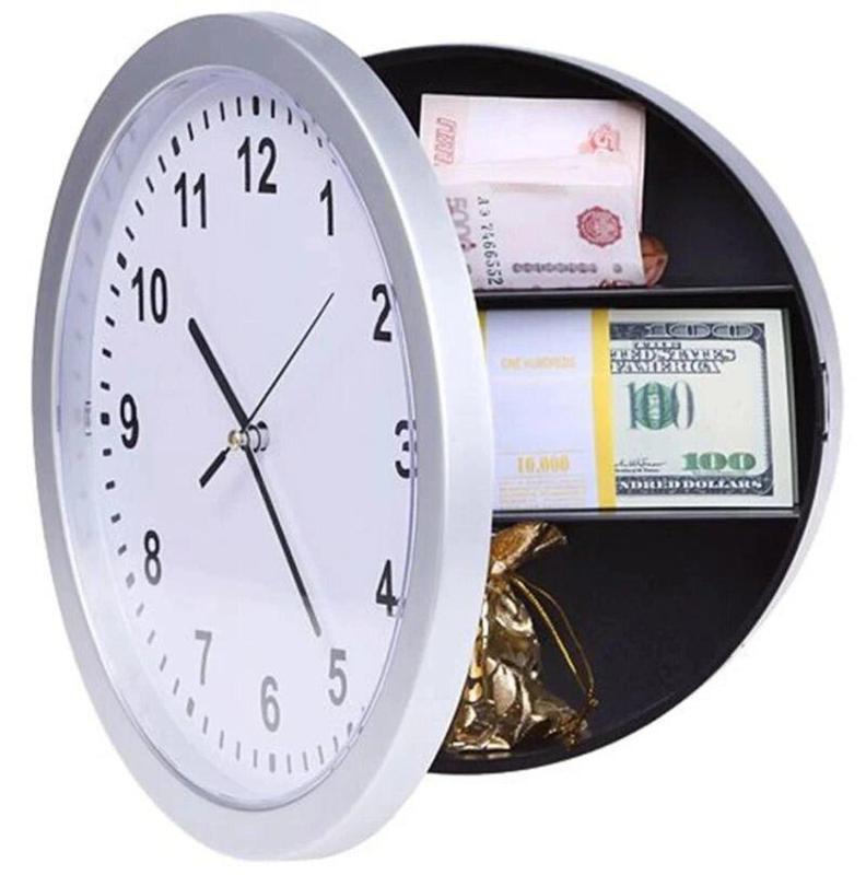 Настенные часы сейф Safe Clock Настенные часы сейф Safe Clock на первый взгляд самые обыкновенные настенные часы, которое можно повесить куда угодно, но это не совсем так. Эти часы еще и хитрый способ спрятать Ваши ценные вещи подальше от посторонних глаз! Часы полностью функциональны. Передняя створка с циферблатом открывается, на внутренней части створки расположен механизм часов с отсеком для батарейки. Пространство внутри часов разделено двумя небольшими полочками и идеально подходит для хранения ключей, часов, денег и других ценных мелочей. Оригинальный тайник для защиты Вашего имущества! Необычный и полезный подарок! Данный аксессуар можно использовать в офисных помещениях, частных домах и в обычных квартирах. Преимущества: Мини-сейф Отлично впишется в интерьер Долгосрочная работа от всего одной батарейки Прост с эксплуатации Основные характеристики: Вид: Настенные часы Материал часов: Пластик, металл Крепление: Настенное Питание: 1 батарея типа АA (Не идет в комплекте) Размер: 25 х 6 х 25 см Вес: 486 г Комплектация: Настенные часы-сейф Safe Clock Упаковка
