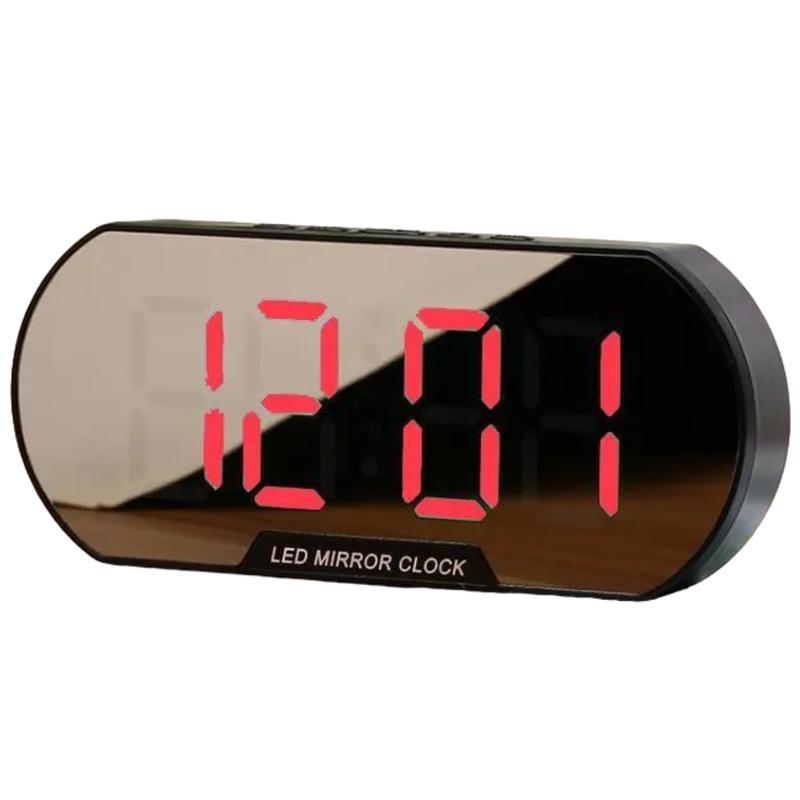 Часы электронные elite 6099 с будильником и термометром, зеркальный led экран, красные циф...