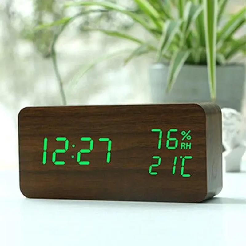 Годинник VST-862S - 4-стильні і практичні для квартири або заміського будинку! Переваги: - Цифровий екран з підсвічуванням - Визначає температуру і вологість в приміщенні - Регулювання яскравості дисплея - Стильний дизайн - Є "сплячий" режим Опис: Метеостанція для дому VST-862S-4 зі стильним дизайном і яскравим підсвічуванням мають безліч функцій, чим значно відрізняються від механічних годинників (будильників). На дзеркальному дисплеї з яскравим зеленим циферблатом відображаються час (формат 12/24), дата, температура (°F,°C) великими цифрами, які видно на далекій відстані. Також передбачена функція установки будильника і вибрати одну з класичних мелодій для приємного бадьорого ранку. Яскравість циферблата регулюється на 3-рівнях за допомогою спеціальної кнопки. Характеристики: - Тип годинника: Настільний - Форма: Прямокутна - Термометр: Так - Тип механізму: Електронний - Матеріал корпусу: Пластик - Час: 12/24 - Дата: місяць / день - Температура: C / F - Живлення: від батарейок AAA 4 шт, через USB-кабел, від мережі через адаптер живлення USB 5V. - Матеріал корпусу: імітація дерева - Колір корпусу: коричневий - Колір підсвічування: зелений - Розміри: 15 x 7 x 4 см. Комплектація: - Настільний годинник з підсвічуванням VST 862-1 - Інструкція - USB кабель живлення.