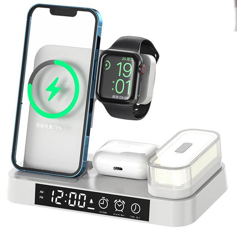 Беспроводная зарядка стенд + ночник и часы a37 4 in 1
