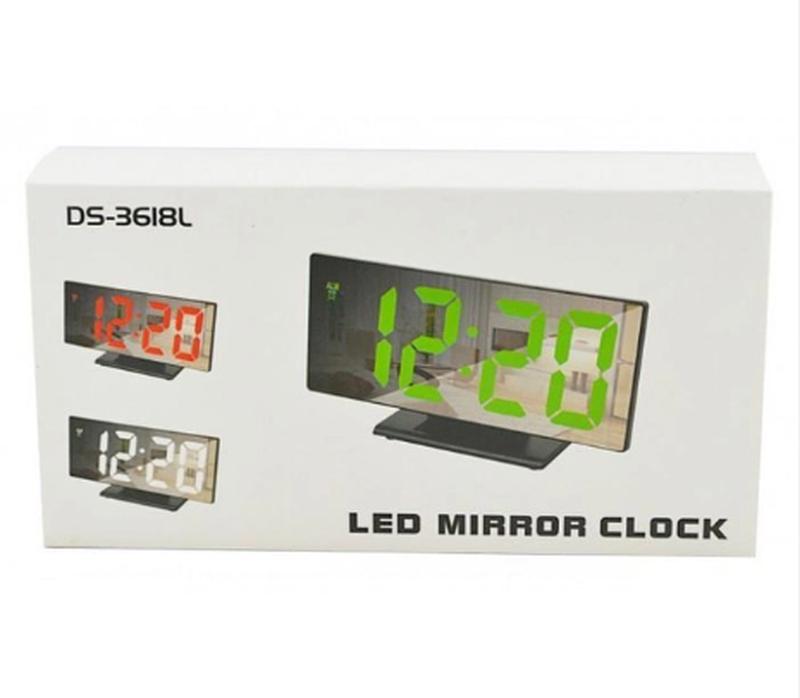 Электронные настольные зеркальные LED часы DS-3618L Описание: Электронные настольные часы DS-3618L оснащены стильным зеркальным дисплеем, который не только показывает время, но и служит эффектным элементом интерьера. Часы снабжены LED-подсветкой, которая обеспечивает отличную видимость даже в темноте. Встроенный будильник с громким сигналом и автоматическое уменьшение яркости в вечернее время добавляют удобства использования. Эти часы могут показывать не только время, но и дату, температуру, а также поддерживают формат 12/24 часа. Преимущества: - Зеркальная поверхность дисплея. - Яркая светодиодная подсветка. - Автоматическое уменьшение яркости в вечернее время. - Встроенный термометр для измерения температуры в помещении. - Несколько режимов индикации: время, дата, температура. - Громкий и продолжительный будильник. Технические характеристики: - Формат времени: 12/24 часа. - Дисплей: цифровой с зелёной LED-подсветкой. - Питание: через USB-кабель (адаптер не входит в комплект), резервное питание — батарейка CR2032 (для сохранения информации). - Размеры цифр: 5,7 х 2,8 см. - Габариты часов: 18,4 х 7,5 х 4 см. - Диапазон температур: 0 ~ +50°C. - Автоматическое уменьшение яркости в ночное время (18:00 - 07:00). Комплектация: - Часы. - USB-провод для питания. - Батарейка CR2032 3V. - Инструкция. Эти часы подойдут тем, кто ценит стильные и функциональные решения для дома или офиса. Зеркальный дисплей придаёт устройству современный вид, а компактные размеры делают его идеальным для настольного использования