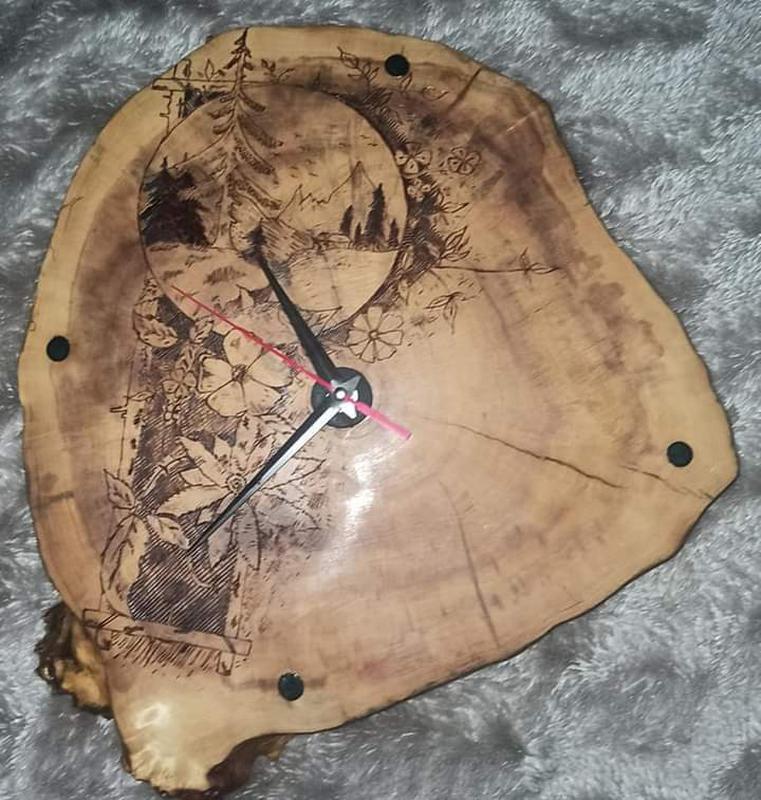 Часы ручной работы, дерево клён, дуб, сосна, рисунок может быть любой, цена зависит от рисунка и выполнено работы.