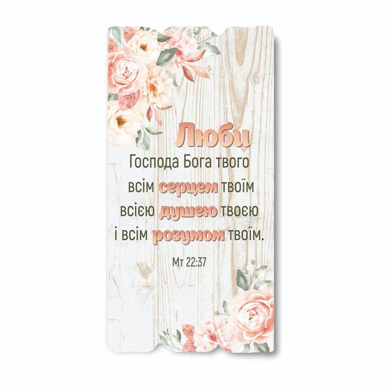 Декоративна дерев'яна табличка "люби господа бога твого всім серцем твоїм"