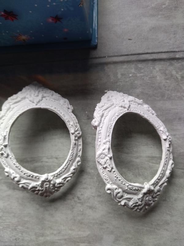 Рамочка 9*5,5см,під заготовочку кульки діаметром 10 см,пофарбована білою акриловою фарбою.