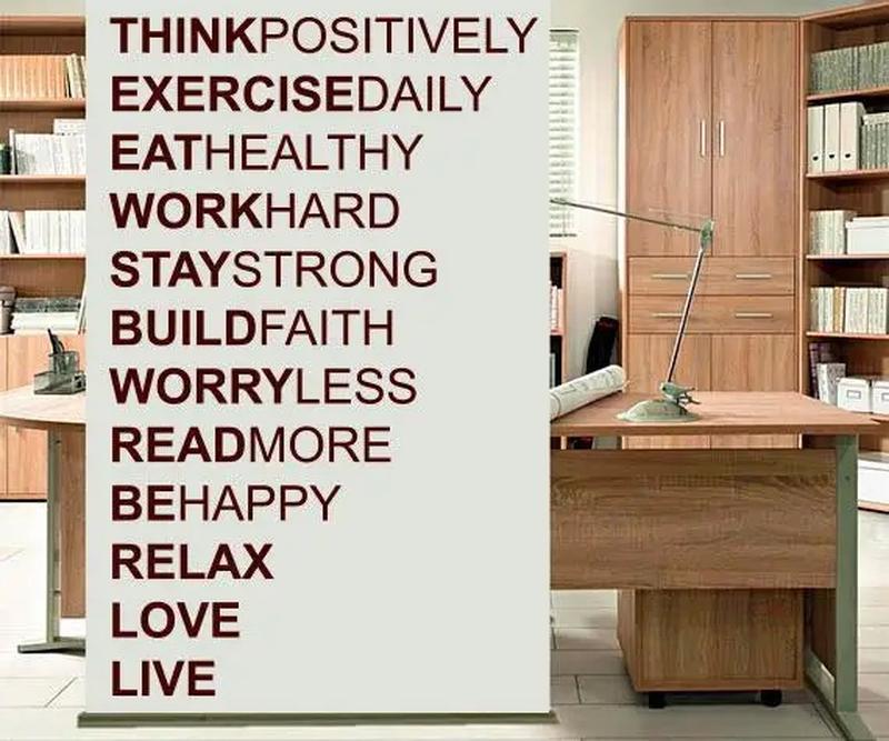 Наклейка "think positive. be happy. read more. live. love. relax" на стену, стекло, мебель...