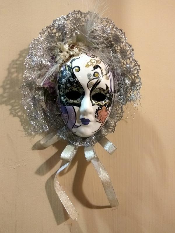 Венецианская интерьерная маска, фарфор, картон, ткань