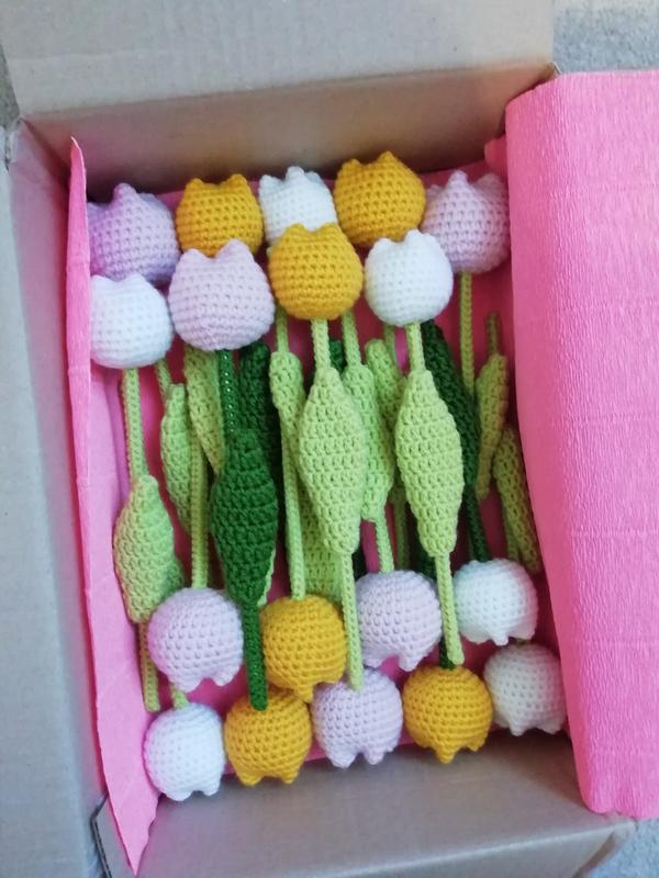Продам отличный пышный букет тюльпанчиков в количестве 3, 5, 7 и тд. цветка. Вязаные в технике амигуруми тюльпаны, вечно цветущие, отличный подарок на любой праздник)))) можно заказать как букет так и поштучно. Длина цветка 21см. Наполнитель – антиаллергенный. Можно стирать вручную. Тюльпанчики будут отличным подарком для ваших родных! Отличное дополнение к интерьеру - уют и тепло) Цена указана на 1 шт. Отпрашиваю укропной и новой почтой. Смотрите другие Мои объявления)