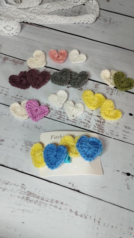Вязаные сердечки, можно использовать как декор, или создать заколочку/резиночку