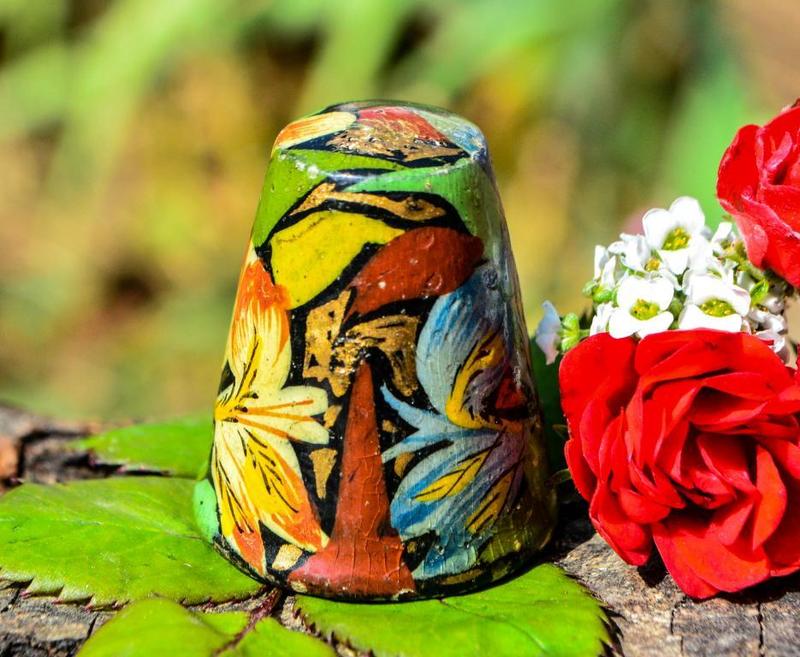 Очаровательный коллекционный наперсток! дерево,роспись! germany! редкость!!!