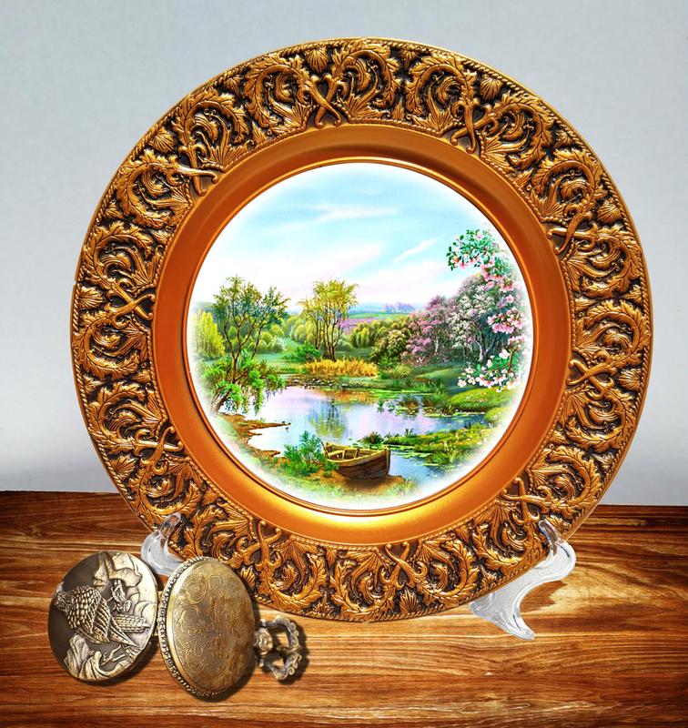Сувенирная подарочная тарелка лодочка изготовлена методом ручной формовки с холодной керамики.Материал очень прочный и долговечный, приятный на ощупь.Не теряет форму, не деформуеться.Не требует дополнительных средств по уходу. Декоративное покрытие акриловыми красками "под старину" .Изображение - высококачественная фотопечать. Изображение не теряет цвета и является долговечным. Тарелка покрыта лаком на водной основе. Диаметр 23см. Крепится на стену, в тарелку встроенный подвес для крепления на стене. Ставится на подставку, как декор для полки или стола. Подставка в комплект не входит.Заказывается отдельно. Использованы только экологически чистые материалы. Изготовим сувенирную тарелку по Ващим сюжетам. К юбилею,ко дню рождения,в подарок и т.п.