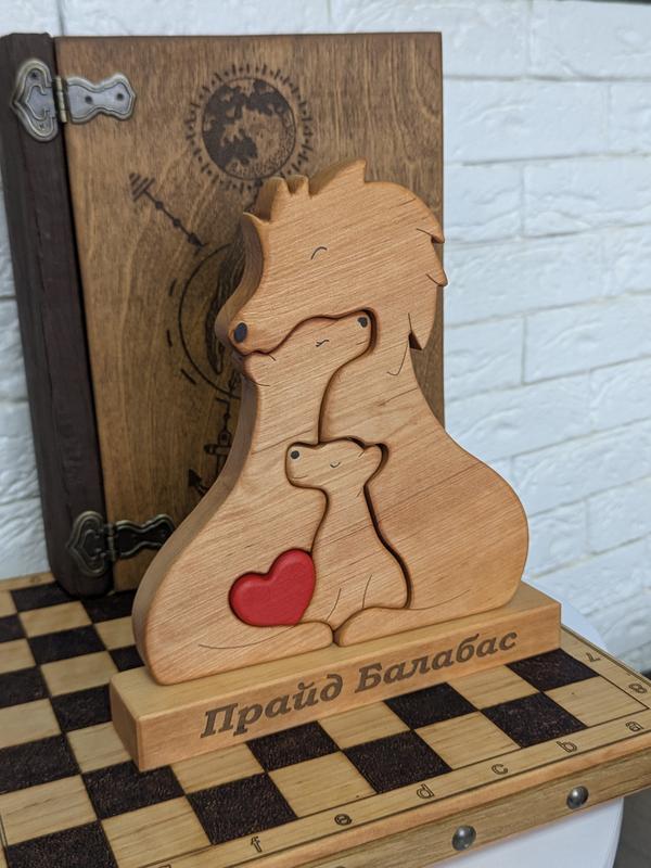 Іменні Сімейні Пазли Статуетки Сувеніри Милий Подарунок Імена наносяться по бажанню Пазли з іменним гравіруванням виконуються по передоплаті 50 відсотків Одиночна фігурка з серцем - 300 Пара з серцем (вінвона) - 600 Сім′я з однією дитинкою - 650 Сім′я з двома дітками - 700 Сім′я з трьома дітками - 750 Сім′я з чотирма дітками - 800 Сім′я з п′ятьма дітками - 850 Підставка прямокутна або овальна без гравірування - 70 Гравірування будь якого надпису 100 Сімейні Пазли у вигляді тваринок створить унікальний та теплий акцент у вашому домі та буде оберегом вашої сім′ї Варіантів оформлення дуже багато - ПІДБЕРЕМО кожному Кожна тваринка символізує члена вашої родини, а їхні імена, вигравірувані на фігурках, роблять цей виріб по-справжньому персональним. Червоне серце в центрі символізує безмежну любов, що об′єднує вас. Виготовлений з натурального дерева, цей подарунок стане чудовим доповненням до будь-якого інтер′єру та нагадуватиме про тепло родинних зв′язків. Ідеально підходить для прикраси вітальні, спальні або дитячої кімнати. Чудовий подарунок на новосілля, річницю весілля, День народження, День матері, День батька, День Валентина, День Сім′ї, 8 березня, 14 лютого, Подрузі, Колегам, Шефу, Брату, Сестрі, Бабусі, Мамі як знак любові та турботи для вашої родини. Статуетки стоять самостійно, їх можна складати і збирати. Якісна обробка і шліфування без гострих кутів. Матеріал - вільха камерної сушки. Покриття - олія. Все Екологічно і безпечно Подарункове пакування з натуральним наповнювачем (стружка) Відчуття справжнього лісу з коробки