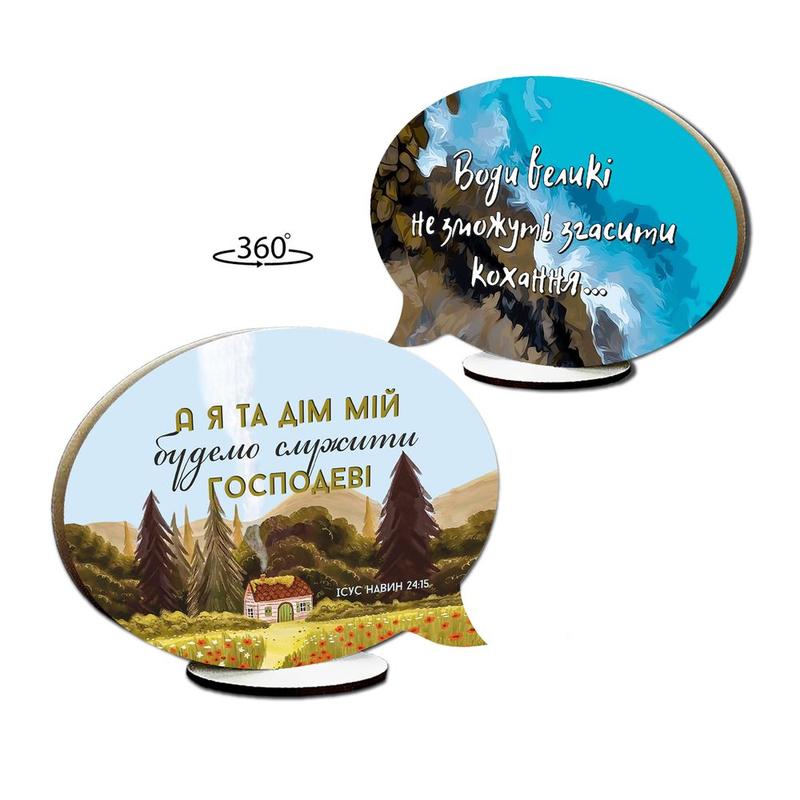 Декоративные деревянные двусторонние таблички с мотивирующими надписями и цитатами из Библии - хороший подарок и украшение для дома. Материал - дерево, МДФ. Комплектующие - табличка, подставка. Общий размер таблицы - 16х12 см. Ширина подставки - 6,5 см.