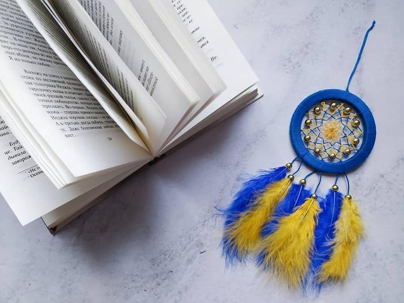Желто синий ловец снов. декор для дома, подарок. амулет.