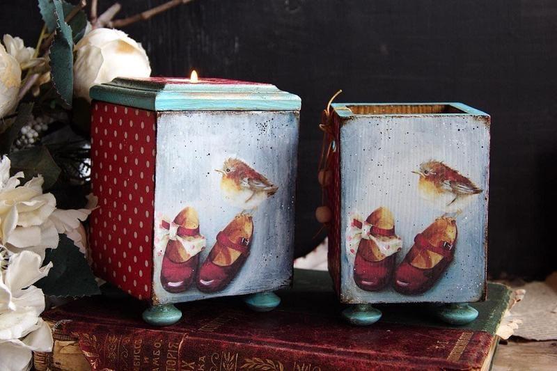 Набір для чарівної панночки, яка, як і я, обожнює гарне взуття та пташок❤️ Підсвічник-короб Органайзер для пензлів Розмір короба 10х10х13 см Розмір органайзера 9х9х13 см