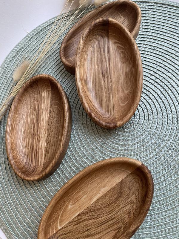 Дерев´яні міні-тарілочки під усе) Підходять: •для бісеру, намистин, прикрас, •в якості підставки під свічки • для канцелярії • як декор для фото • для харчових продуктів • та для безлічі ваших дрібничок Розмір 130*75 Можливе виготовлення за індивідуальними розмірами Матеріал: дуб Покриття: натуральний віск Ціна: 200 грн. Дополнительные характеристики: Форма тарелки: овальная