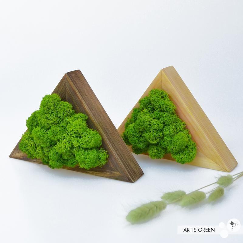 Размеры треугольника: 17*14*14 см. Материал: натуральное дерево. Доступно в двух цветах. Растение - мох скандинавский. Возможно выполнения в 21 цветах. ХАРАКТЕРИСТИКИ: Красота естественности плюс красота простоты. Новые настольные композиции из стабилизированных растений и мха от компании ARTIS GREEN. 1. 0% ухода; 2. 0% освещения; 3. 5-8 лет свежести. 4. 100% натурально; 5. 100% экологичные материалы; 6. 100% ручная внимательная работа; 7. 100% индивидуально; 8. Гарантия от компании; 9. Официальные прямые поставки. Стоимость указана за 1 треугольник.