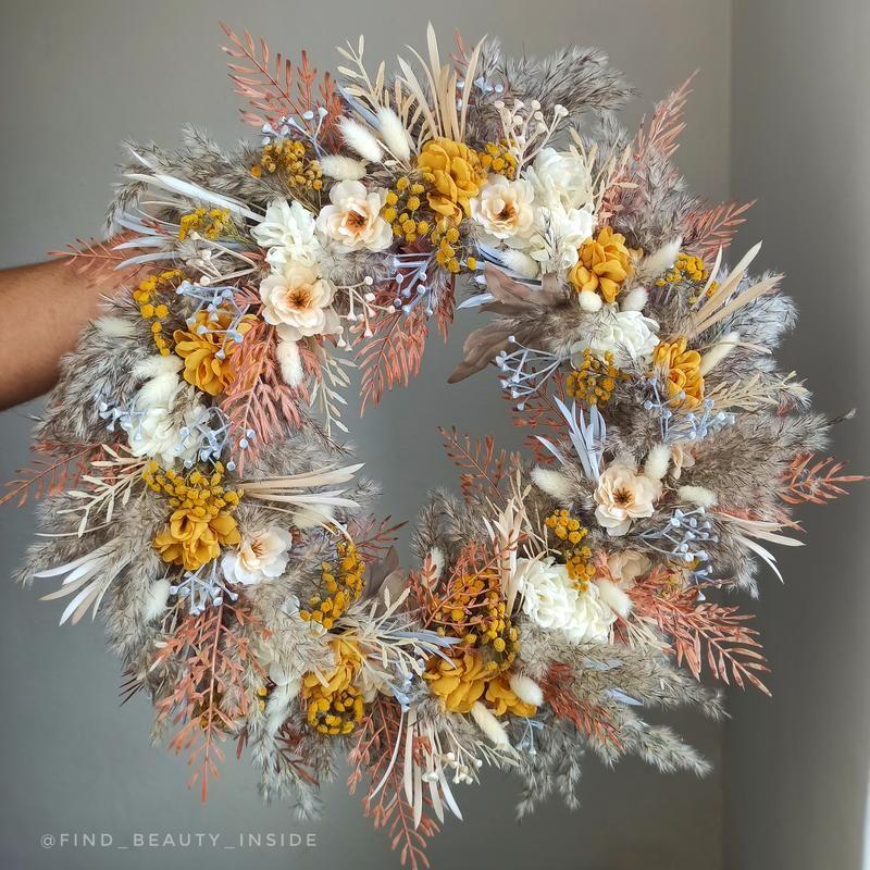 Венчик, который привлечет взгляд всех без исключения. Он достаточно большой и пышный. Станет прекрасным украшением на дверь. Также можно украсить интерьер внутри прикрепив венчик на стену. Такой венчик можно приобрести для себя, или же в подарок. Станет прекрасным украшением собственного дома, или рабочего места ( кабинета, студии, салона). Венчик будет дарить приятные эмоции как вам, так и вашим гостям. Венчик большой, диаметр 46 см. Изготовлен с использованием сухоцветов, цветов ручной работы из ткани. Наложен платеж с предоплатой 200 грн