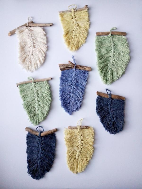 Если вам нужен приятный и ненавязчивый акцент в интерьере, этот декор будет идеальным решением. Вы можете повесить такое перышко на ручку шкафа, комод, книжную полку, кровать, лампу, стену и любое другое место. Натуральный хлопок, окрашенный вручную, обработанная ветка. Доступные цвета: - натуральный (белый) - зеленый - темно серый - голубой - темно синиий - желтый - пудровый - бордовый - лавандовый - красный - серый Длинна 15-20 см Ширина 10-15 см Все материалы красятся вручную, потому форма веточки и цвет перышка может немного отличаться от фото.