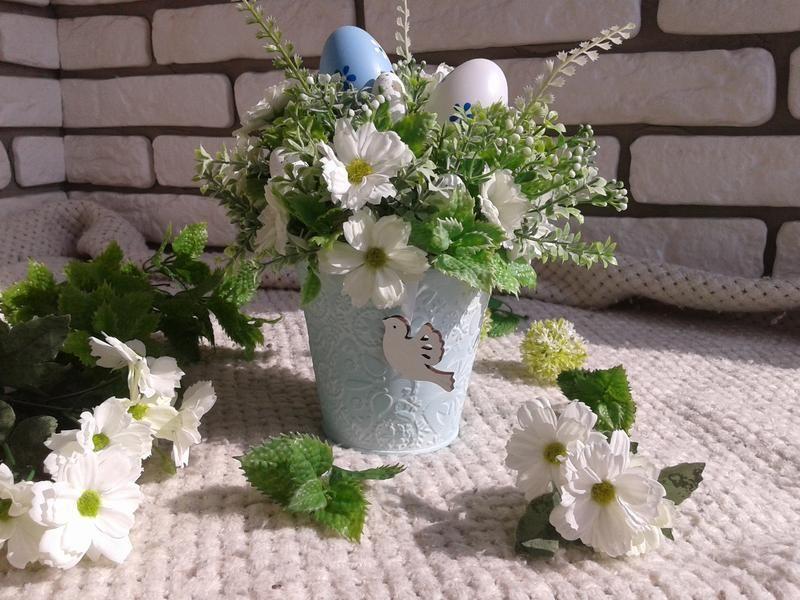 Легкая, очень воздушная интерьерная композиция «Нежность». Использованы такие элементы декора, как цветы клематису, тмина, крапивы, яйца. Основа - металлическое ведро пастельного голубого цвета. Сочетание нежных, приглушенных оттенков придает композиции некую загадочность и спокойствие. Красивое украшение для дома и необычный подарок для друзей и близких. Композиция сделана с любовью, хорошим настроением и желанием сделать Ваш дом уютным :)! Оплата-100% на карту Приватбанка или наложенный платеж (предоплата 150грн.).Единственный экземпляр! Вес-320г.