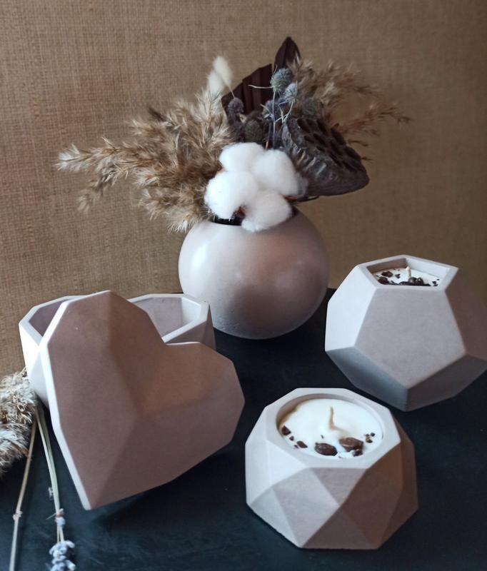 С чем у вас больше всего ассоциируется уют? Наверное первое, что приходит на ум - зажженные свечи Вот и мы решили расширить имеющийся ассортимент свечами из соевого воска. Выбрали соевый воск за его экологичность, это натуральный природный материал, который не выделяет вредных веществ при горении Первые свечи подготовили с ароматом кофе, и как же они прекрасно сочетаются с композицией из сухоцветов и шкатулкой из бетона нежного шоколадного оттенка