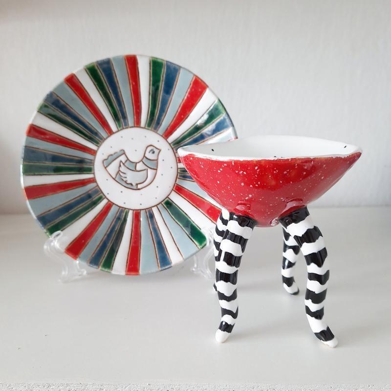 Тарілка з пташкою 17см + бокал 150мл Ручна ліпка та розпис, шамот, поливи, надглазурні фарби Тильна сторона тарілочки помолочена та провощена Не забувайте, шо керамічні вироби бояться різких перепадів температур, тому перед заливанням кипятком ополосніть бокал теплою водою з-під крана Ціна 550 грн Товар под заказ