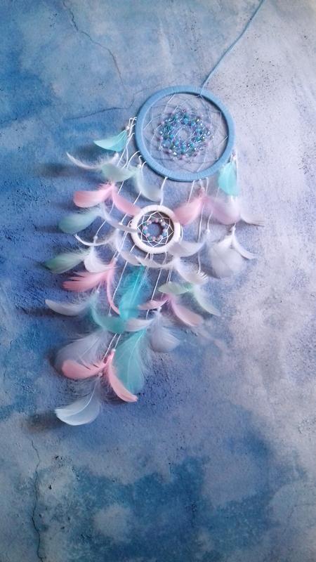 Нежнейший ловец снов, похожий на зефирку, отлично украсит девчачью комнату. Можно смело брать на подарок, этот воздушный ловец снов не оставит никого равнодушным. Россыпь кристаллов, вплетенных в паутину , притягивает взгляд и просто завораживает Товар под заказ