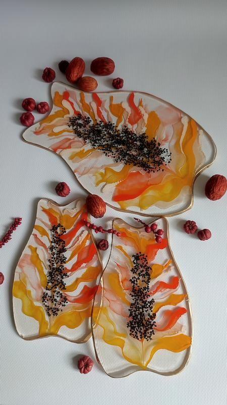 Яркий, сочный набор для сервировки стола в форме Папайя. Тарелка для подачи фруктов, нарезки сыра, размер 26 / 17 см .Подстаканники можно использовать под бокалы, свечи, духи. Размер 18 / 12 см