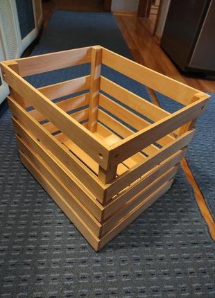 Ящик для використання в промислових морозильних камерах. Дерево вільха (в основному наразі сосна). Висота 30 см. Ширина 28 см. Довжина 35 см. Без покриття. Можливі будь-які розміри, фарбування. Товар виготовляється на замовлення. Строки: 3-10 днів.