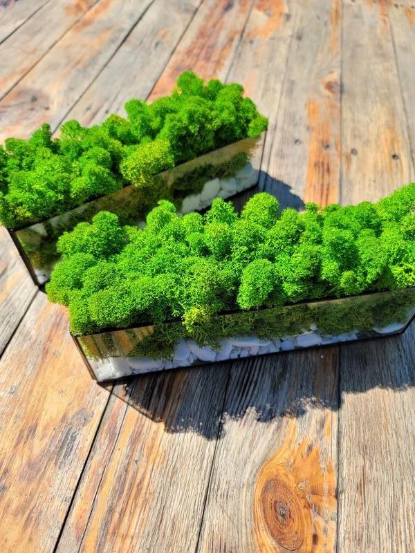 Стеклянный моссариум с мхом и наполнением из двух видов камней. Моссариум доступен в разных размерах. Цвет мха, выбирайте из наличия (уточните при заказе) Стильный декор для вашего рабочего места. Отправка в течении 2-3 дней.