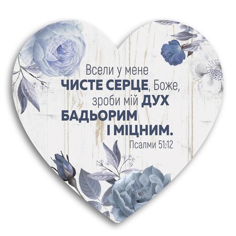 Декоративна табличка-серце "всели у мене чисте серце , боже, зроби мій дух бадьорим і міцн...