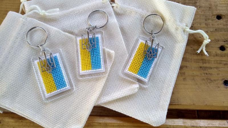 Брелоки с украинской символикой, бисер, ручная работа, так же может быть как магнит на холодильник Дополнительные характеристики: Тематика декора, рисунка: Флаги Материал магнита: Винил Материал основы: Акрил Форма: Прямоугольная