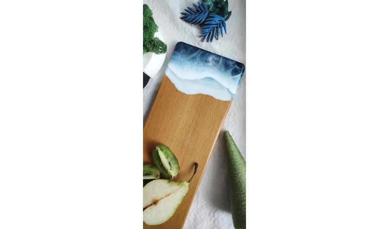 Досточка для подачи блюд,сервировки стола. Ручная работа! Треши моря вам в ленту😊 Малается в технике Resin Art. Размер 31х12см.