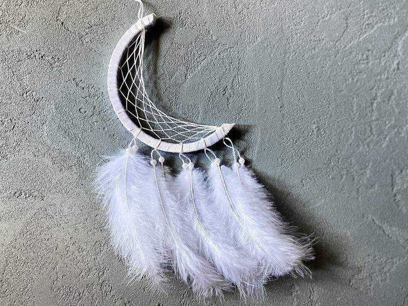 Білий ловець снів у вигляді місяця. белый ловец снов луна