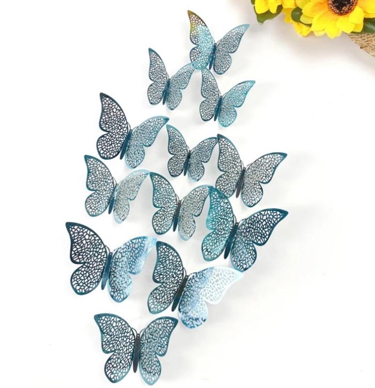Бабочки декоративные на стену бирюзовые - в наборе 12шт. разных размеров