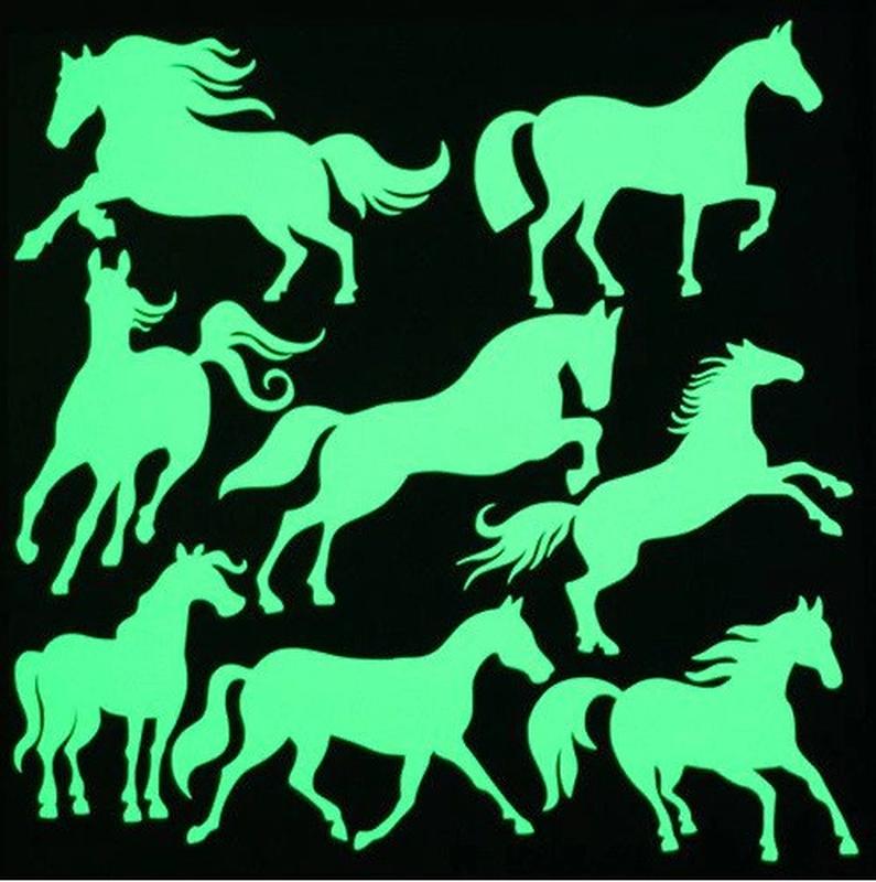 Люминесцентные наклейки "Лошади". Цвет: салатовый. Размер: 21*20см. Материал: ПЭТ. Все наши товары Вы можете посмотреть на нашем сайте: Создать сказочную уютную атмосферу в спальне или в детской комнате помогут наклейки, светящиеся в темноте. Такой декор доступный и недорогой, зато впечатление, которое он производит, превышает всякие ожидания. Однозначно стоит попробовать использовать эти наклейки для украшения своего дома. Люминесцентные краски в сегодняшнее время, несмотря на распространенное заблуждение, абсолютно безопасны для здоровья. Поэтому не бойтесь покупать светящиеся наклейки в детскую комнату. В большинстве своем, светящиеся краски для виниловых наклеек – это фотолюминофоры, то есть вещества, способные накапливать энергию светового излучения и отдавать ее после прекращения светового воздействия.