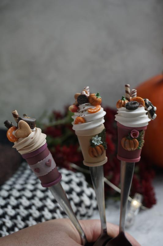 Ложка с декором - это всегда хорошая идея подарок Здесь -осенные, интересующие с тыквинками и вкусностями -для вашего осеннего настроения и приятного чаепития Или как дополнение к основному,презенту В индивидуальной подарочной упаковке Ложечки премиум качества, сталь Декор-полимерная глина Опыт мастерства более 10 лет В инсталграм ****** больше фото и идей для подарок Ложечки в для осеннего настроения и фото в наличии