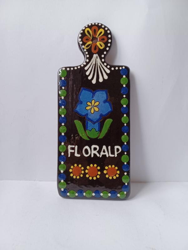 Автентична підставка з розписом. Центральна фігура композиції — альпійська квітка. Верх глазуроване покриття. Є отвір, можна розмістити на стіні. Можливо для сервірування стола. Ручна робота. Ідеальний стан. Країна походження — Швейцарія. Peter Reber, Töpferei, 3199 Gelterfingen im Gürbetal. Розмір 22х9х1 (1,5) см.