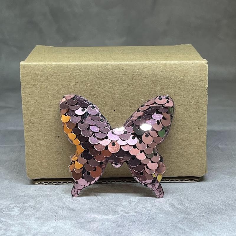 Аппликация бабочка (паетка), 5*4,3 см, цвет- розовый, шт, розовый