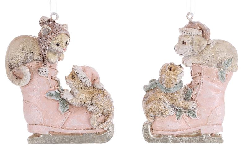 Декоративная подвеска Животные в ботинке 7.5см, 2 дизайна, цвет - бежевый с персиковым и светло-коричневый Декоративная фигурка на подвесе Гном 7см, цвет - красно-бордовый и серый, 2 дизайна Подвесной декор Птичка на шишке, 10,5 см, 2 дизайна Декоративная подвесная фигурка Птичка в короне, 9.5см, цвет - белый Декоративная подвеска Мишка Тедди 5х8см Декоративная подвесная фигурка Лошадка-качалка, красная и белая с шампанью, 7.5см