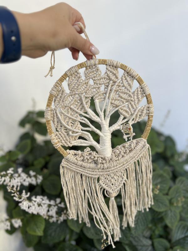 Ручная работа. Дерево-обориг изготовлен в технике макраме из натуральных материалов. Оно символизирует гармонию, семейное счастье и защиту, добавляя уюту любому интерьеру. Идеальный подарок для близких или украшение вашего дома. Размер: 20 см ширина 40 см высота Заказывайте сейчас, чтобы наполнить свой дом теплой энергией и уникальностью!