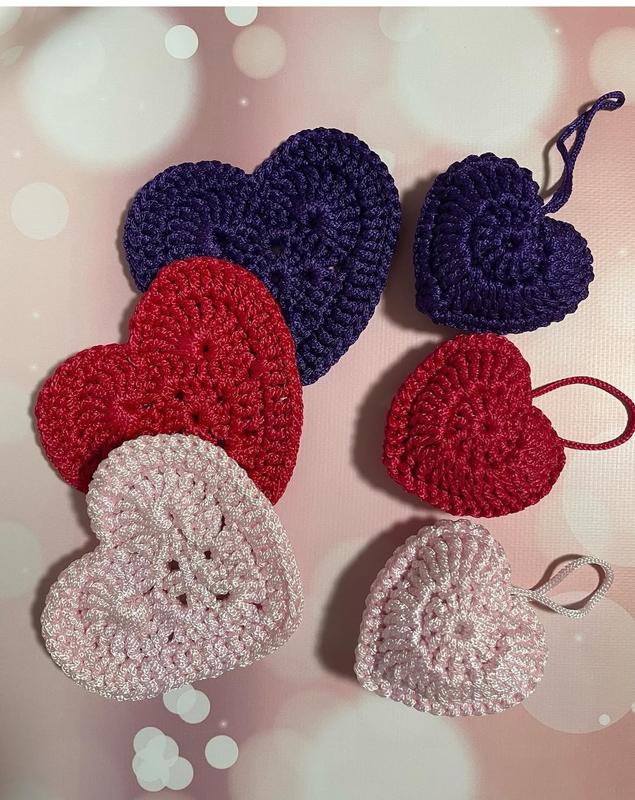 Красивое сердечко связано со шнура набор с сердечка которое можно как подставку под чашку, а второе в качестве брелока на ключи или рюкзак