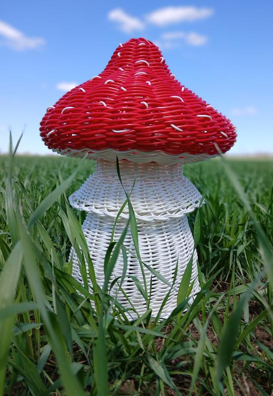 Мухомор зі штучного ротангу Висота 50 см , діаметр шляпи 33 см Під замовлення любий розмір