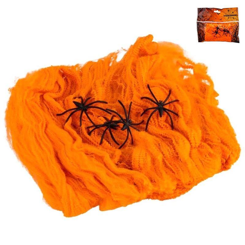Паутина с пауками декор на хэллоуин оранжевый 19134-004