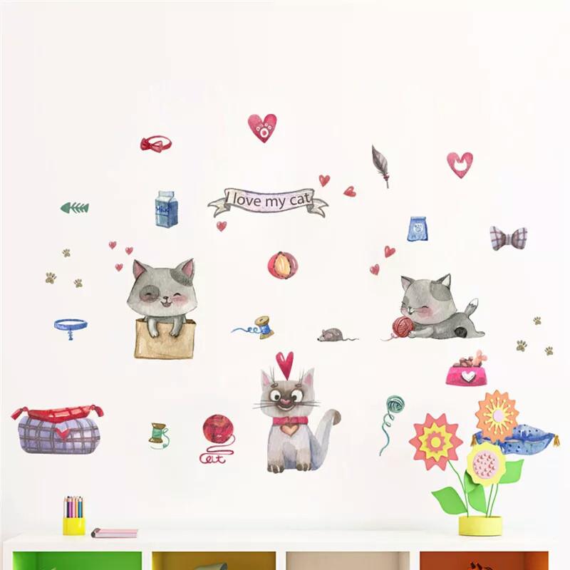 Наклейки с котами на стену в детскую, "I love me cat" украшения стены наклейки 65*100см Вы получите лист размером 30см*90см , где компактно наклеены наклейки, смотрите на фото