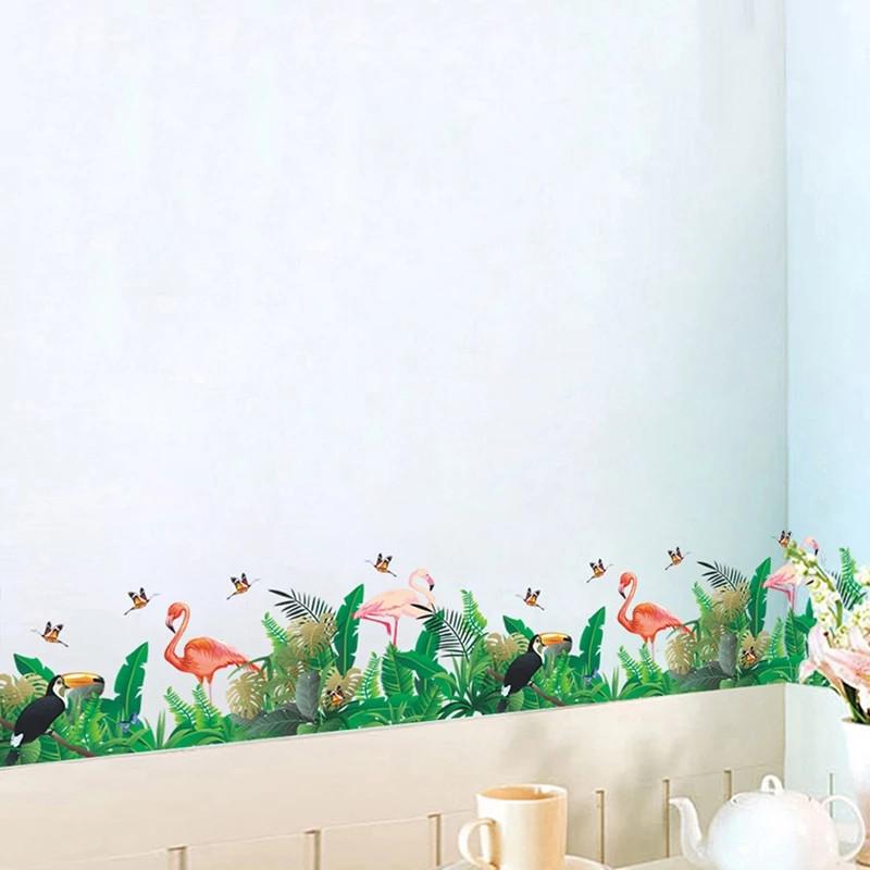 Наклейка в детскую два фламинго в тропиках (лист 25 х 70см) б220