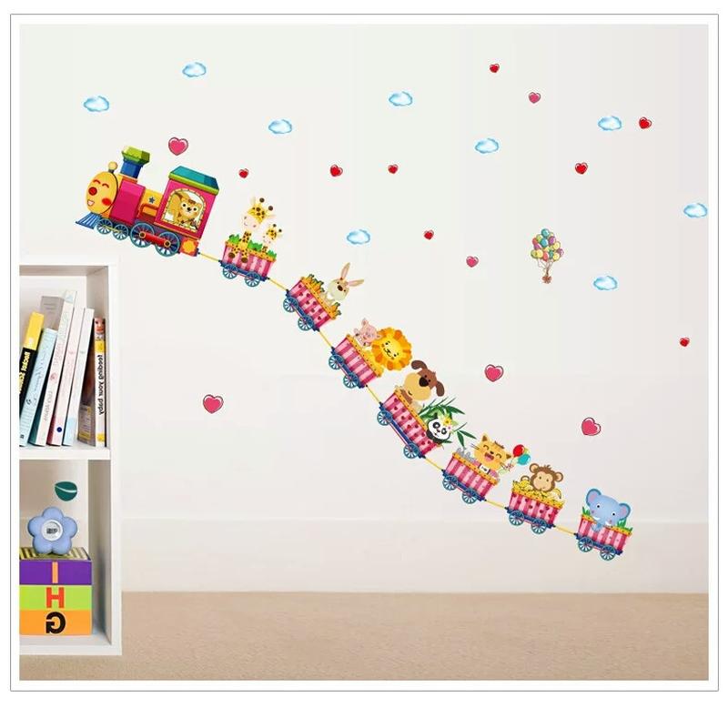 наклейки на шафу "Веселий паровозик" приблизний розмір після наклеювання 52 х 158 см Є можливість змінювати малюнок, у такий спосіб змінюючи розміри. Ви можете розмістити тварин у будь-якому порядку. Складається з листа розміром 50*70 см