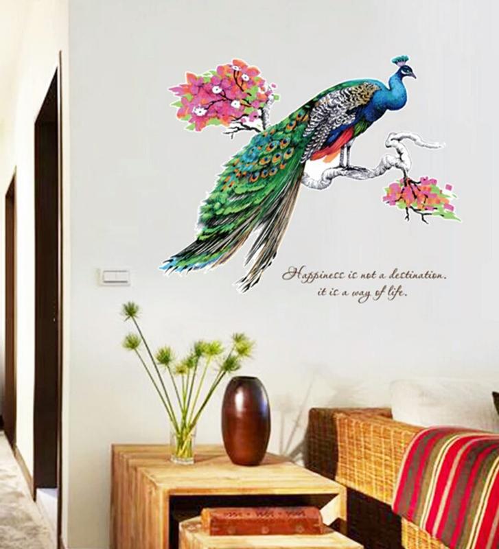 Виниловые наклейки на стену красивый павлин на ветке (лист 60 х 90 см) б352