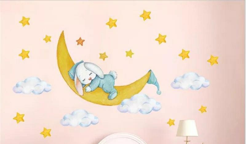 Виниловые наклейки на стену зайка спит на луне (лист 30 х 60 см) б394-27