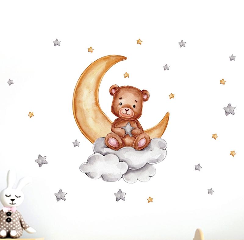 Декоративные наклейки для детского сада на стены "мишка сидит на тучке возле месяца" 71см*74см (лист 30*90см) Наклейки компактно наклеены на листе размером 30см*90см, приблизительный размер после наклеивания 71см*74см