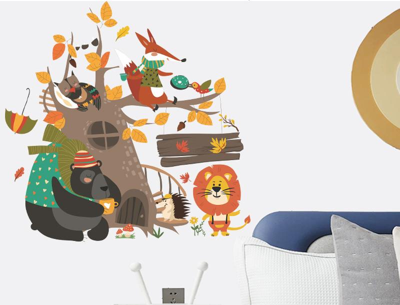 Виниловая наклейка на стену, в детскую, в детский сад "звери на отдыхе Be Happy Day" 49см*40см (лист 30*90см)